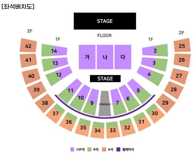 지역별 진행되는 장소에 따라 좌석 배치도는 모두 다릅니다. 예매 시 공연장 좌석 배치에 대한 내용을 확인해 보시고 최고의 자리에서 무대를 감상하시기 바랍니다. 보다 자세한 내용은 지역별 티켓 예매 사이트에서 확인하실 수 있습니다.